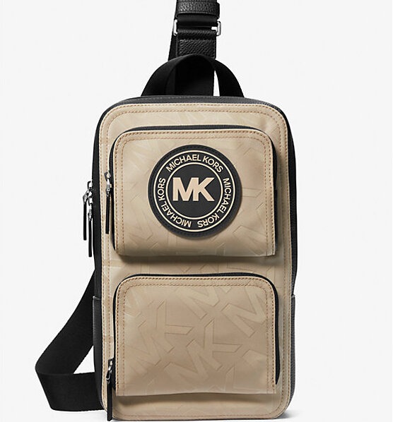 Bolso Michael Kors Men Cruzado Color: Beige Tamaño: Mediano Material: Cuero y tela impermeable acolchado
